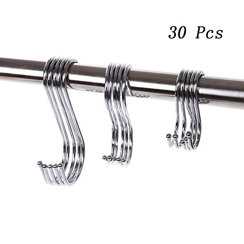 30 Packs S Shape Hooks, Small Medium Large 3 Sizes Stainless Steel Hanging Hooks for Pots Pans Clothing and more
