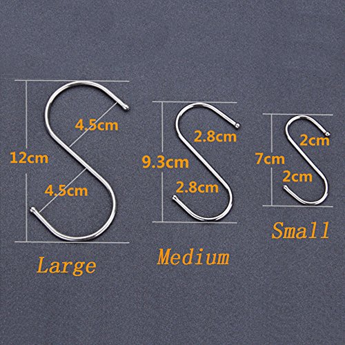 - COME 3 SIZES: 10 pcs small S hooks, 10 medium S hooks, 10 large S hooks. Can meet your different needs