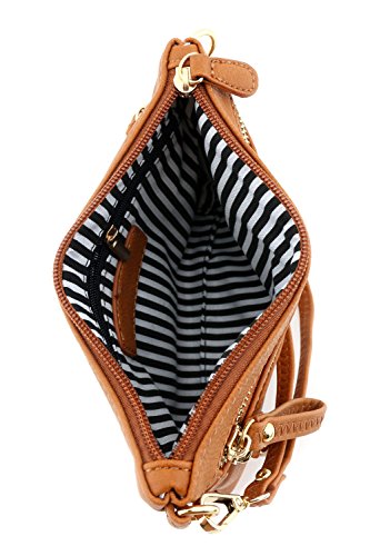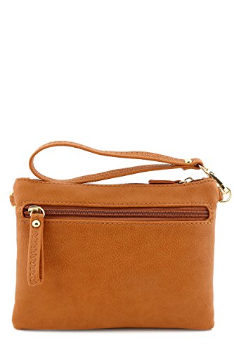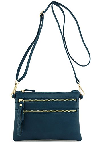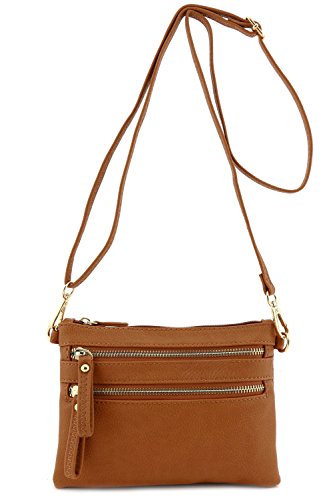 Multi Zipper Pocket Crossbody Bag, Total 3 zipper pockets at outside and 1 zipper pocket inside. It can be used as a wristlet purse or as a crossbody bag.