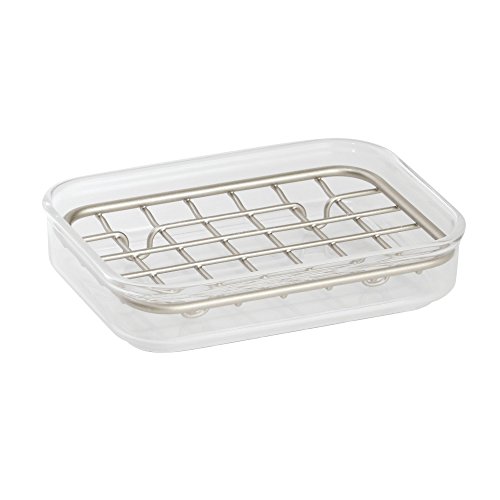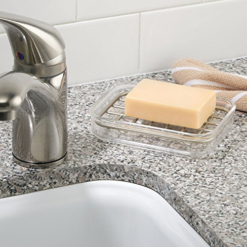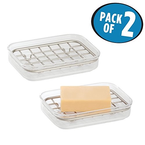 mDesign Soap Bar Dish with Tray for Bathroom Vanities, Kitchen Sink - Pack of 2, Clear/Satin