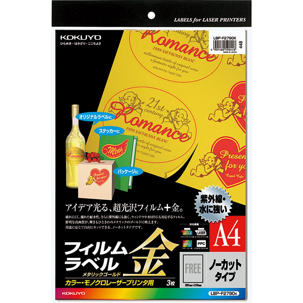 ... 225g / LBP-F2790K material thickness ... PET film 3 pieces Kokuyo laser & color copy film label metallic gold uncut A4 (japan import)