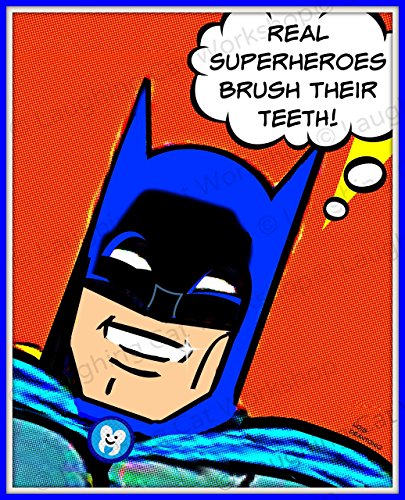-. Title : Brush your teeth print Superhero art for kids Toddlers Boys room decor Batman wall art Kids Comic print, Superheroes Bathroom decor Dentists wall art