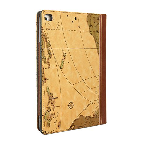 iPad Air 2 Case, GMYLE Book Case Vintage 360 for iPad Air 2 - Brown World Map Pattern PU Leather Rotating Swivel Case Cover