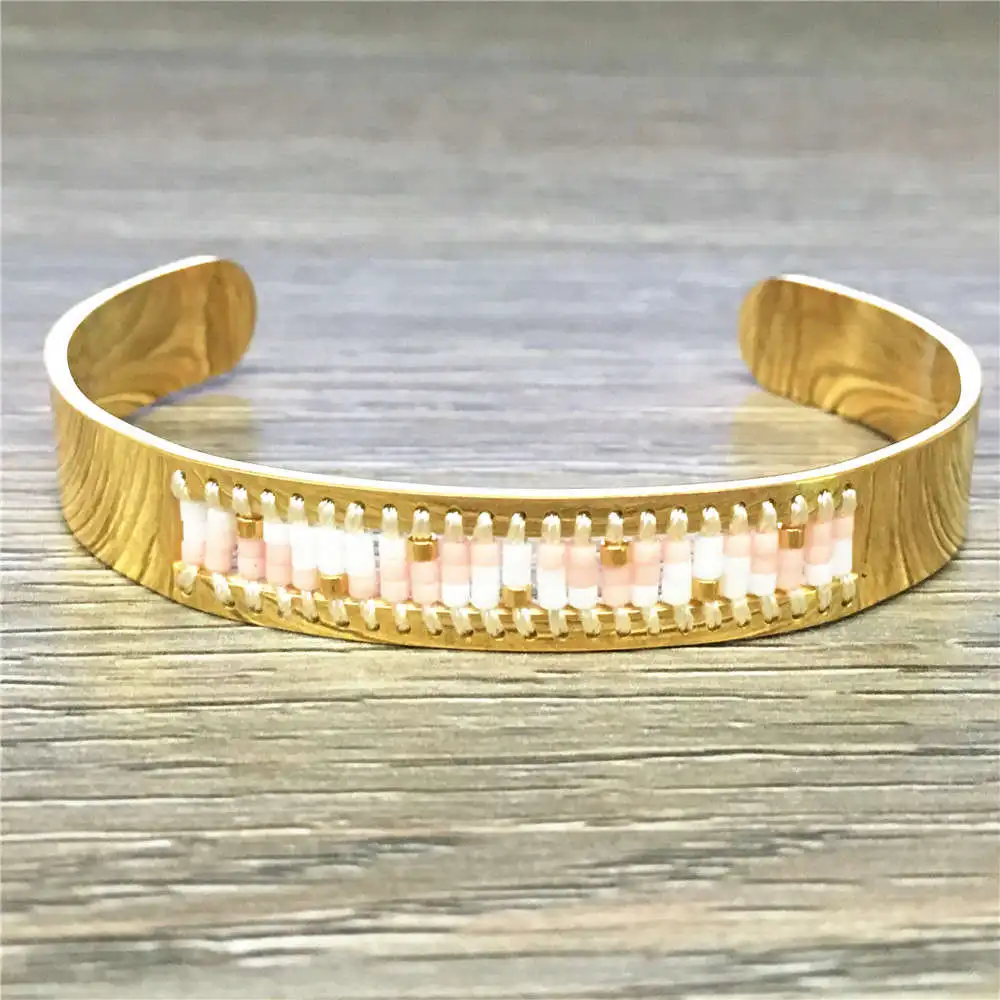 Chain Type:Seed Beads Handmade Stainless Steel Cuff Bangles