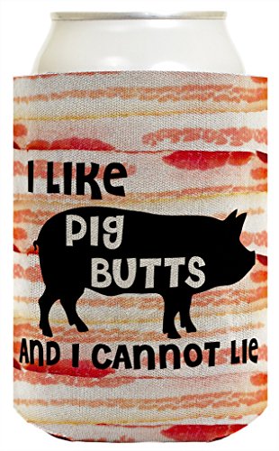 Funny Beer Coolie I Like Pig Butts Bacon Lover BBQ Grill Meat Chef 2 Pack Can Coolie Drink Coolers Coolies Bacon