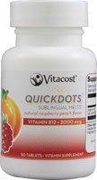 -. Feature : High potency 2,000 mcg per servingRapid-dissolve, sublingual tablets Natural fruit flavor For quick delivery of vitamin B12, try new Vitacost Quickdots Sublingual Melts / Vitacost Brand