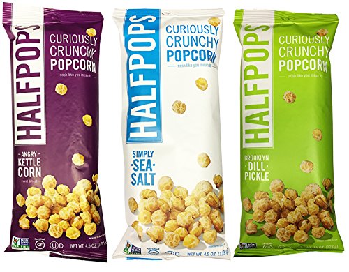 - Halfpops Gluten Free Non-GMO Curiously Crunchy Popcorn Variety Pack of 3 (4.5 Ounce)