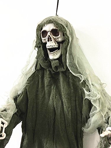 -. Brand : The Festive Shop -. EAN : 0636160127846 -. Feature : Material:Plastic and fabric / Perfect for your scary Halloween party or Hang outside to SCARE trick or treaters! / Also idea for door curtain and corner around your house to spook your unsuspecting guests! / Battery BB (including), light up for candle light / Bendable, poseable arms mean the ghost can be arranged in multiple different poses -. Label : The Festive Shop -. Manufacturer : The Festive Shop -. ProductGroup : Lawn & Patio -. ProductTypeName : OUTDOOR_LIVING -. Publisher : The Festive Shop -. Studio : The Festive Shop -. Title : Halloween Hanging Ghost With Lantern Haunted House Decoration - Great for Haunted Houses, Home Decor, Lawn Decor and Backyard Parties -36" -. UPC : 636160127846