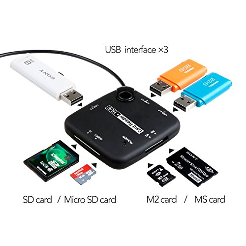 7 in 1 Card Reader & Hub: 3X USB2.0 ports , 4X card slots including SD(HC), TF, MS and M2