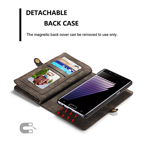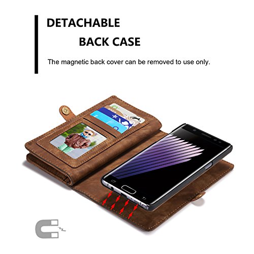 -. Binding : Wireless Phone Accessory -. Brand : NERVX -. Feature : Compatible phone model: Samsung Galaxy Note 7 / High quality synthetic leather we use, soft and durable. Vintage look distressed leather with rub pattern design, protects your Samsung Galaxy Note 7 . / Internal case can be attached to the wallet and other metal parts magnet; can be removed when needed. / Extra LARGE capacity:14 slots for different cards,1 Zipper Wallet for cash/driving license/insurance/etc.Zipper closure cash compartment, carry some money or your earphone with phone securely.so you never have to worry about spilling your cards or cash again! Live your life without the anxiety of losing the things most important to you. / We made space for the things you care about most. With slots for your ID, cash, credit cards, never wonder where you set your wallet again! Stop frantically looking around for your wallet and risk running late to work. We managed to create a slim and comfortable fit wallet case for your Samsung Galaxy Note 7 that allows you to carry the most important things all in one place. -. Label : NERVX -. Manufacturer : NERVX -. PackageQuantity : 1 -. ProductGroup : Wireless -. ProductTypeName : WIRELESS_ACCESSORY -. Publisher : NERVX -. Studio : NERVX -. Title : Galaxy Note 7 Case,NERVX High Quality Cowhide Leather Wallet Cover Case,[Zipper Wallet] Multifunction Detachable Magnetic Hard Case - 14 Card Slots for Samsung Galaxy Note 7