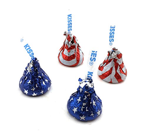 -. Feature : Hershey's Kisses, Milk Chocolate Kisses Red-White and Blue USA Flag (Pack of 2 Pound) / Perfect for snacking, celebration décor, and party favors. / Individually wrapped Red-White and Blue foil. Chocolate Solid Milk Chocolate Stars and Stripe Foil Balls. / Hershey's Milk Chocolate Kisses 4th of July, USA Flag Style. / Kosher milk chocolates, gluten-free candy.