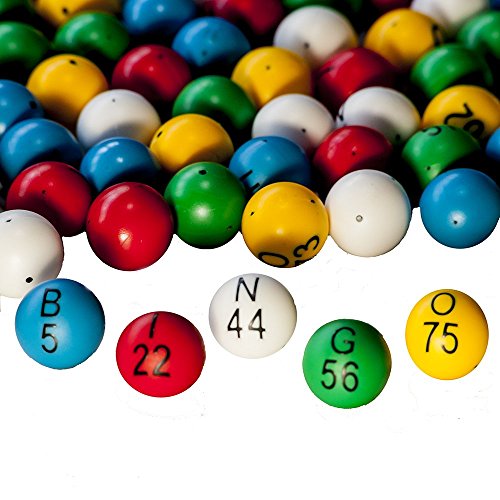 (75) 7/8” (or 23 mm) solid plastic bingo balls numbered B1-O75 in 5 colors