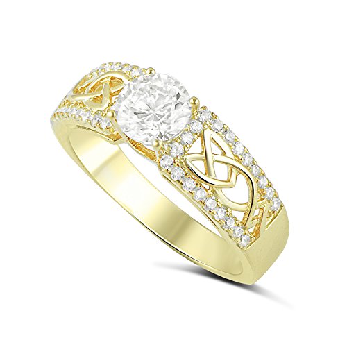 -. Title : Yellow Gold Tone Sterling Silver Simulated Diamond Celtec Ring (Size 5 - 9)