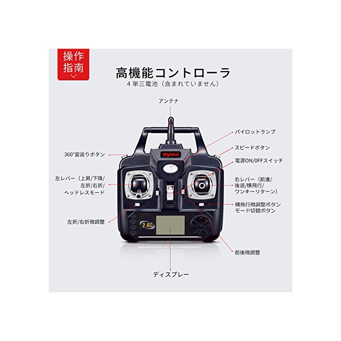 ●안정의 비행 시스템,최신의 6축 쟈이로 비행 제어 시스템에,안정의 비행을 확보하고, 보다 아름다운 사진이나 비디오를 취하는 것 를 할 수 있습니다.2.4GHz의 무선 제어 기술을 채용하고, 강력한 간섭 방어 기능을 소유고 있습니다.저 전압,스쳐 전류 보호 기능이 있고, 비행 안전성을 확보하는 것 를 할 수 있습니다.(적용 대상 연령10세 이상(아드님이 사용할 때는,반드시 어른 이 시중들어 주십시오 )