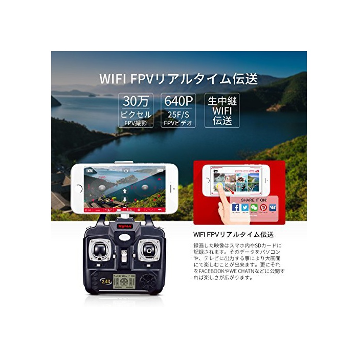 원본상품명: SYMA X56W RCドロン 折りみ式 2.4GHz 4CH 6軸ラジコン Wifi FPV カメラ付き 空撮 リアルタイム 重力感知 ワンキリタン ヘッドレスモド IOS/Andr