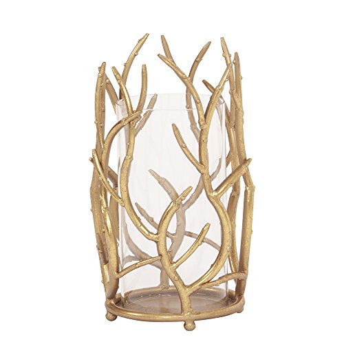 Studio : Howard Elliott Publisher : Howard Elliott Binding : Kitchen Product Description This candle holder features branches, fashioned from metal that wrap around a glass hurricane. The branches are finished in a striking bright gold. It fits up to a 3 inch pillar candle (not included). pair with the larger size and the matching alda mirror to complete the look. 0