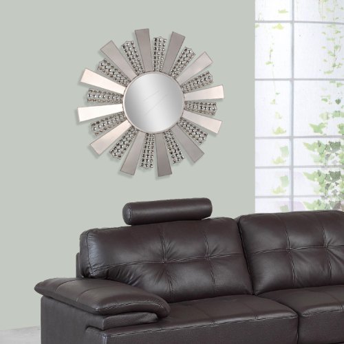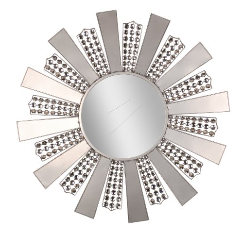 - Alternating between jeweled and mirrored panels the sunburst wall mirror adds texture and interest to the room