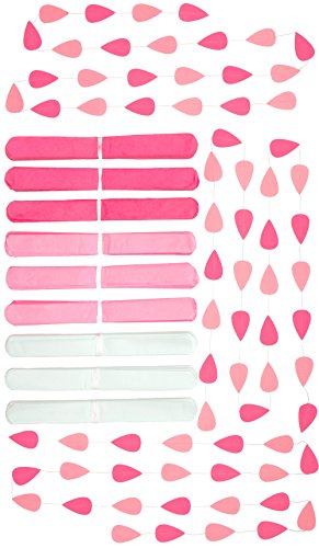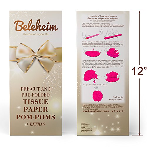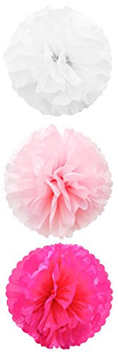 - The next day everyone will be discussing your event because our beautiful paper flowers won't leave anyone indifferent! Each set comes with 9 pieces paper pom poms of three colors and 3 raindrop garlands. Colors: rose pink (3*12inch); fuchsia (3*set: light 12inch); white (3*12 inch).
