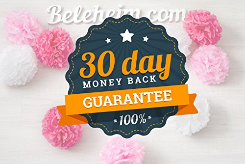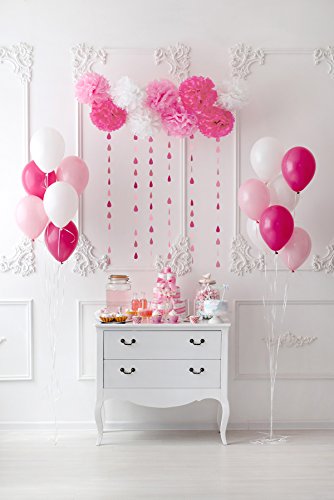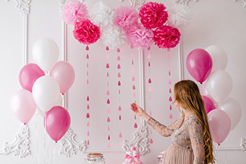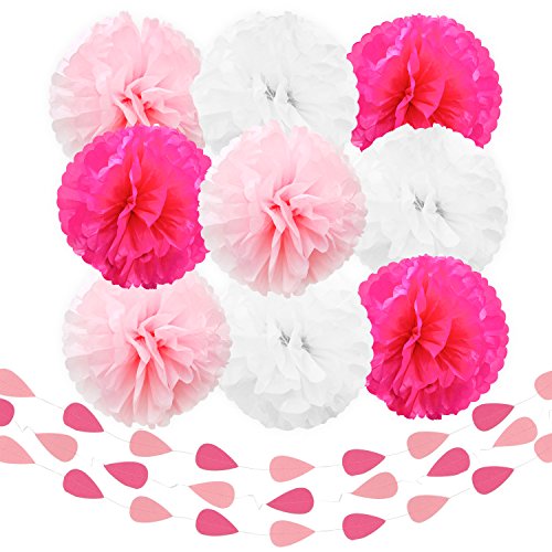 Beleheim Set of 9 pcs 12" Tissue Paper Pom Poms and 3 Garlands Pink Fuchsia White Decorations For Nursery Birthday Party Sweet Sixteen Mother's day Wedding Bridal Shower