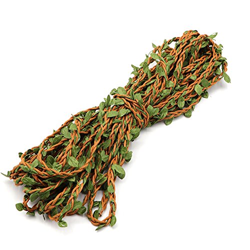Felice Arts 32.8 Feet/pcs 2 packs Wax Cord with Leaves Artificial Vines Leaf Plant Handmade Wreath Christmas Rattan Accessories Wedding Home Garden Wall Decor (Browm)
