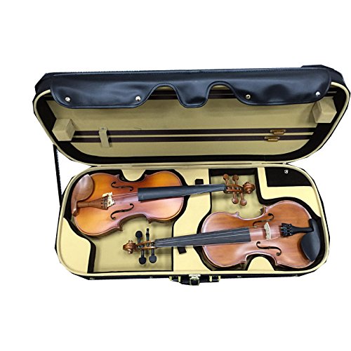 -. Brand : AM -. EAN : 0698915304957 -. Feature : Enhanced Foamed with hard protecting cover case / Fit Double 4/4 violins with body or 2 violas,Can hold four violin bows / Square Shape made of PU / It can be lock by the small key to pretect your violin / Foam color is random sometimes (violins in the pictures not included) -. Label : AM -. Manufacturer : AM -. PackageQuantity : 1 -. ProductGroup : Musical Instruments -. ProductTypeName : STRINGED_INSTRUMENTS -. Publisher : AM -. Studio : AM -. Title : Violin & Viola Double Case 4/4 Violin Up To 16" Viola CAN Hold 4 Violin Bows NEW -. UPC : 698915304957