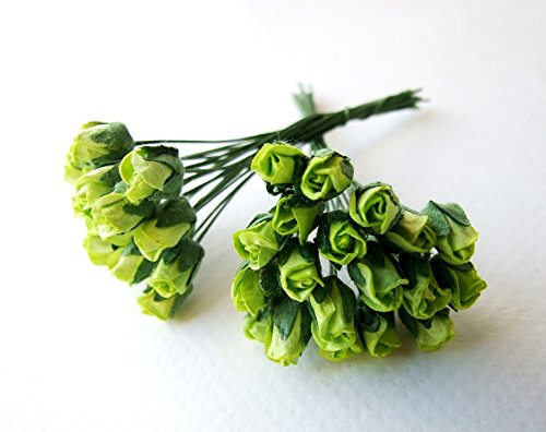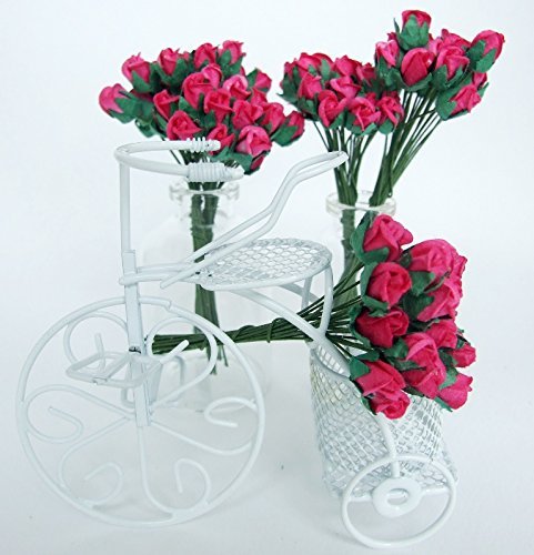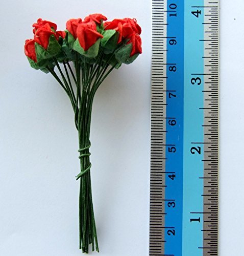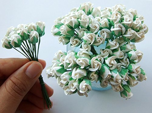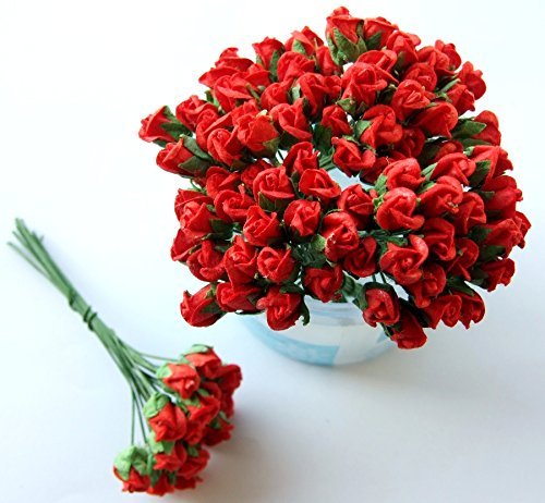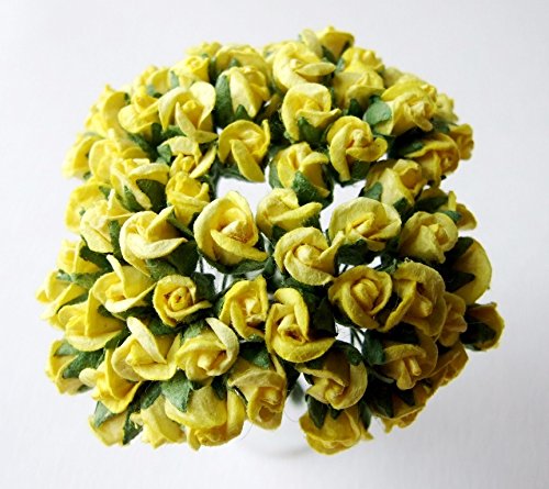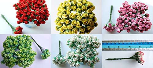 ICRAFY Assorted 100 Tiny Rose Bud Mulberry Paper Flower Artificial Craft Scrapbook Wedding Supply Accessory DIY, Blue Yellow Brown Orange Red-White Color, Size 0.5 cm.