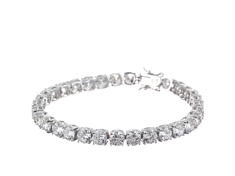 Platinum Plated Sterling Silver Round Cut 6mm Cubic Zirconia Tennis Bracelet, 8"