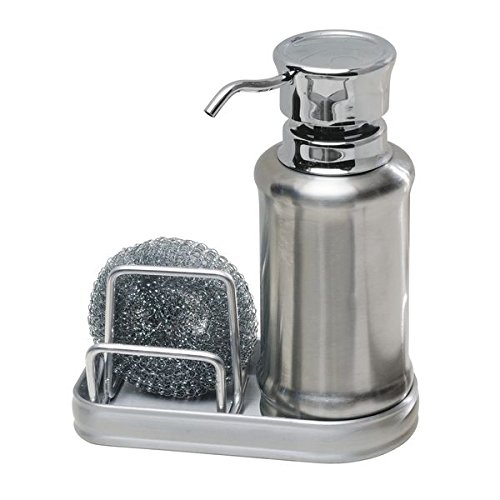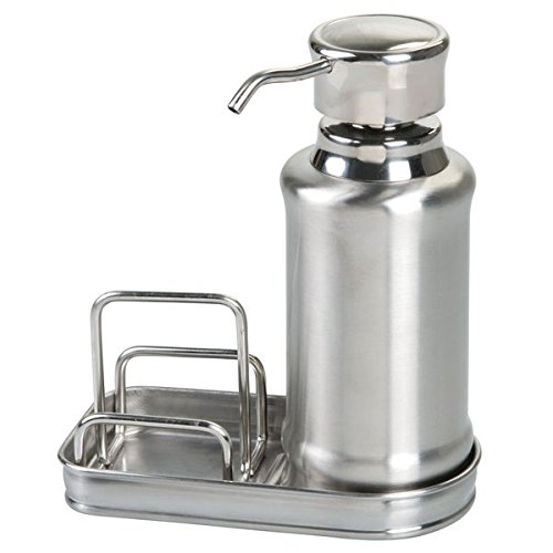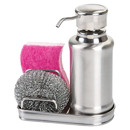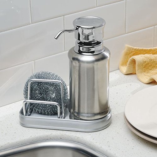 mDesign Soap Dispenser Pump with Sponge and Scrubber Caddy for Kitchen Countertops - Split Finish