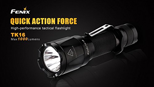 Fenix TK16 1000 Lumens Cree LED tactical Flashlight package with genuine Fenix ARB-L2M 18650 Li-ion rechargeable battery and 2X EdisonBright CR123A Lithium batteries