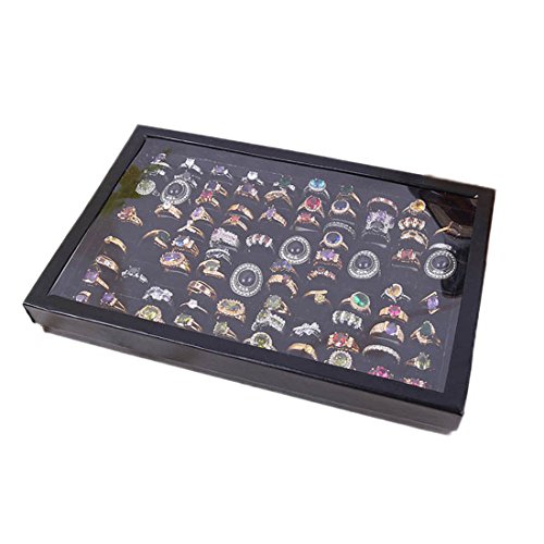 -. Title : Jewelry Rings Display Tray Box, FTXJ Rectangle 100 Slot Storage Velvet Case Black