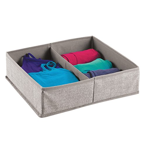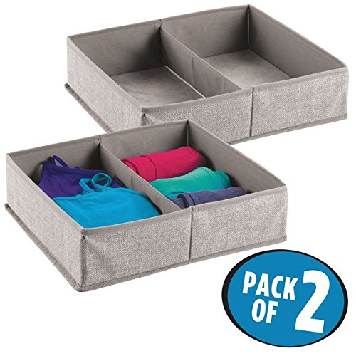 - COMBO PACK OF 2: Fabric Drawer Organizers with 2 compartments each create coordinated storage for your drawer, shelf and closet space