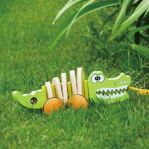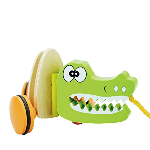 This crocodile pull toy is great for balancing, fine tuning motor skills, hand-eye coordination, encouraging imaginative play and early walking