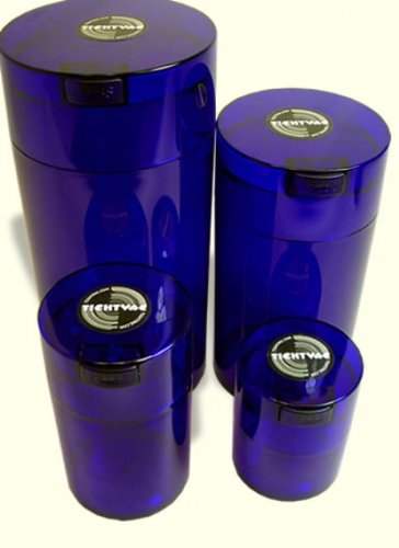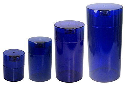 Tightvac Nested Set of 4 Vacuum Sealed Dry Goods Storage Containers, 4 Sizes: 24-Ounce, 12-Ounce, 6-Ounce, 3-Ounce, Cobalt Tinted Body/Cap