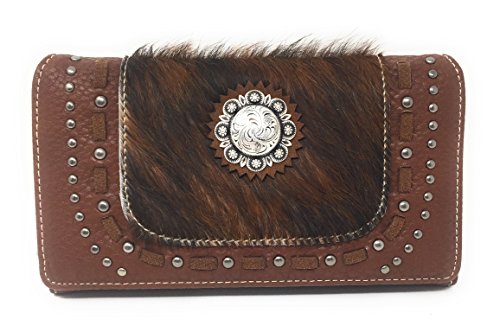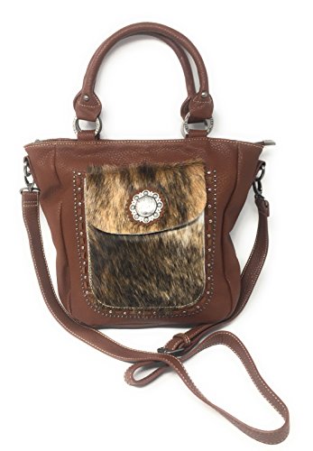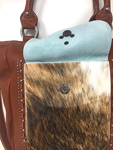 Set of Trinity Ranch Cowhide Hair Partial Leather Concealed Carry Zip Top Shoulder Bag Tote Purse And Western Styling With Matching Wallet