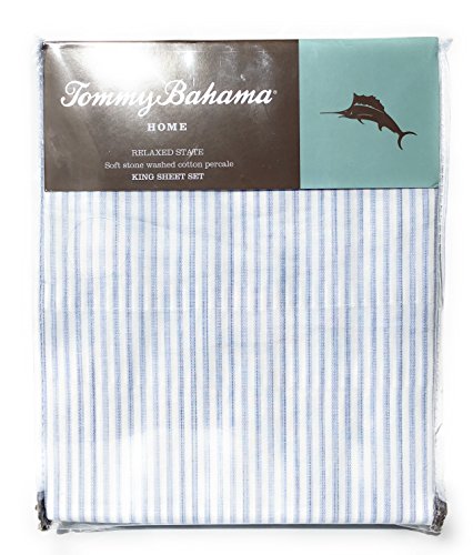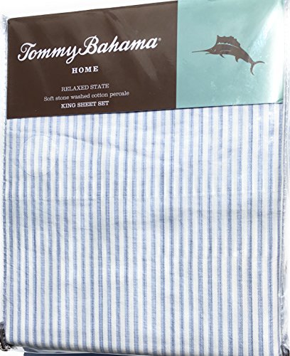 Tommy Bahama Relaxed State Cotton Percale Paloma Beach Stripe Blue King Sheet Set
