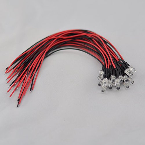 10pcs 12 Vdc 5mm White wired LED's - 7 inch long red and black wires
