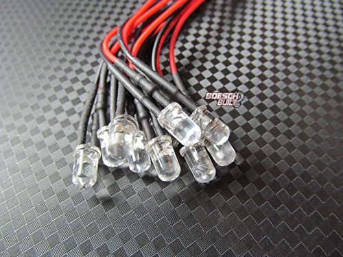 Qty 10- LED Lights- 5mm pre wired 12 volt leds- 12V (White)