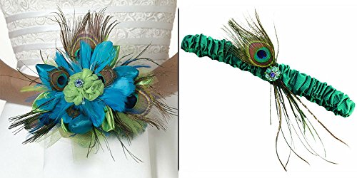 Bundle of 2 Lillian Rose Wedding Accessories - Peacock Bouquet and Garter