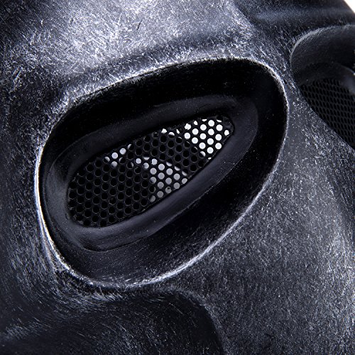 -. Feature : Nice Built Quility Worth the P.R.Ice - High strength glass fiber composite materials, withstand the hit of high power / Ergonomic Design -- Provides comfortable and breathable wearing condition to your whole face / Secure & Comfortable Fit -- Metal mesh eyes protector and comfortable cushion pads are located inside the mask, protect the weak part such as eyes and teeth without misleading visual judgment / One Size Fits Most -- With 5 adjustable elastic belt strap full face mask fits most teens and adults / Suitable for a Wide Range -- Can be used for Parties, Movie props, Halloween, Cosplay, War Game, Airsofts, Hunting or other outdoor activities