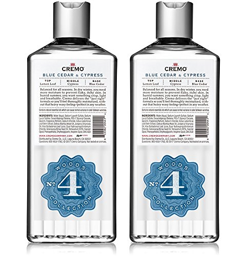 The rich, powerful fragrance of refreshing blue cedar wood, aromatic cypress and a citrus zest. It's a scent you'd expect to find at a high end boutique without having to find yourself at a high end boutique. Cremo All Season Body Wash fragrances are layered and complex so they evolve and change during your shower as the different notes are revealed. Plus, Cremo All-Season Body Wash contains marula oil to nourish your skin in all seasons. It washes off easy and clean while leaving a rich, moisturizing barrier without that heavy, waxy feeling. That's good uncommon scents.Feature