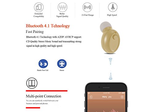 SolidPin Mini Car Invisible Earbud Bluetooth Headphone Noise Canceling Headset with Mic & Hands free Calls for iPhone 7 Plus 6S 5S Samsung Galaxy S7 S6 S5 J7 Note 5 4 3 Android Cell Phone iPod Laptop