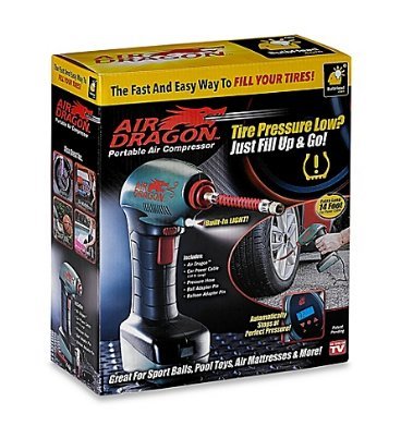 -. IsAutographed : 0 -. IsMemorabilia : 0 -. Label : air dragon -. Manufacturer : air dragon -. PackageQuantity : 1 -. ProductGroup : Automotive Parts and Accessories -. ProductTypeName : AUTO_ACCESSORY -. Publisher : air dragon -. Studio : air dragon -. Title : Air Dragon Portable Air Compressor as seen on TV