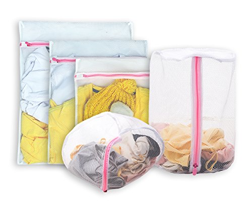 Aimto Set of 5 Mesh Laundry Bags - 1 Large, 1 Medium, 1 Small, 1 Underwear Bag, 1 Lingerie Bag - Premium Quality: Laundry Bag for Blouse, Hosiery, Underwear, Bra and Baby Clothing, Travel Laundry Bag