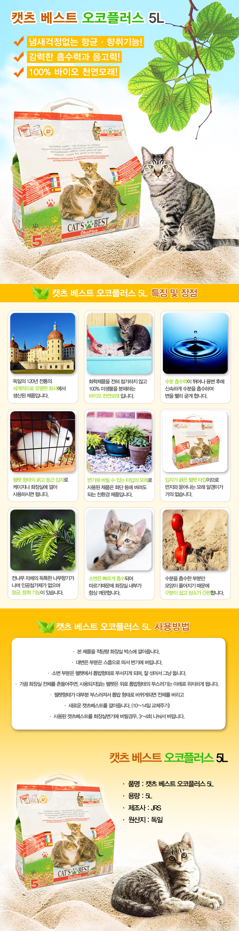 Ocopurus 5L litter toilets 2 cat litter-type natural wood incense large capacity Cat's Best