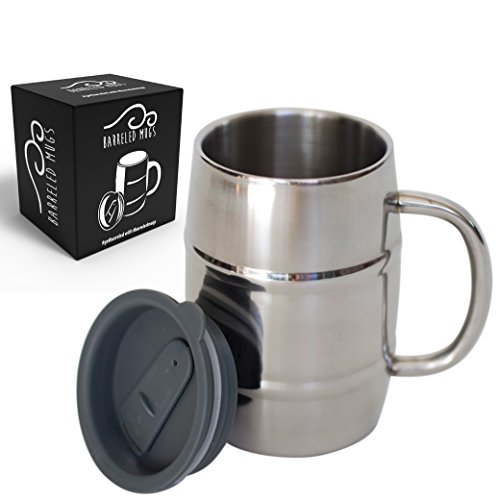 Stainless Steel Beer Mug w/ Bonus Lid, 17oz Dual Wall Air Insulated Beer Beverage Mug / Coffe...