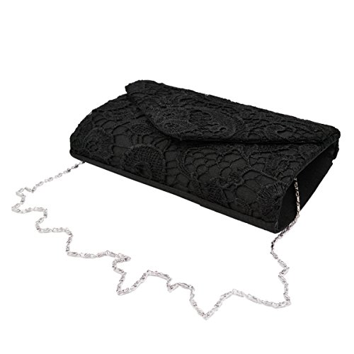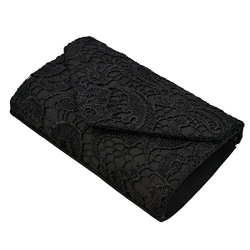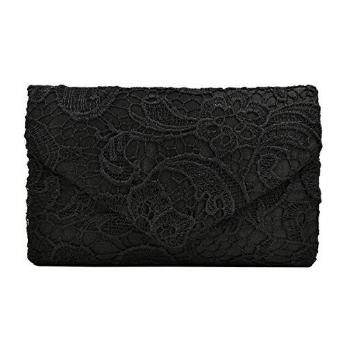 -. Feature : Elegant and unique lace paisley floral fabric front envelope style satin clutch evening bag / Fabric lining. Magnetic-flap closure. Interior wall pocket. / Removable hideaway shoulder chain strap with 21" drop / 8.75" (L) x 5.5" (H) x 2.25" (W) / High quality with different vibrant colors available