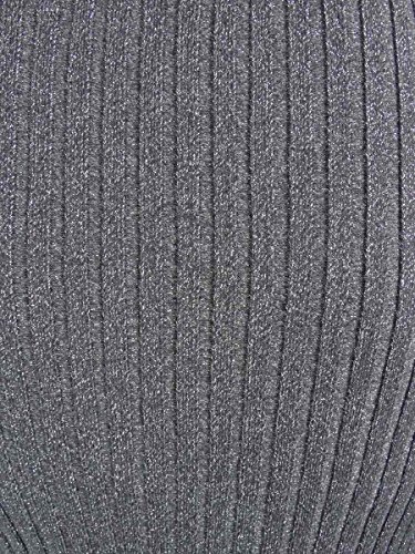 Sweater features no lining, cowl neckline, long sleeves, metallic rib knit fabric, and pullover style.