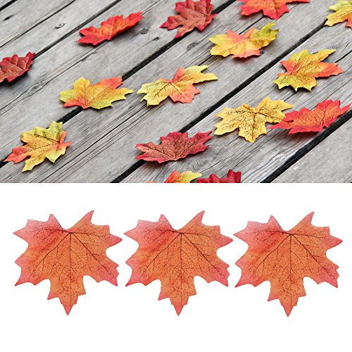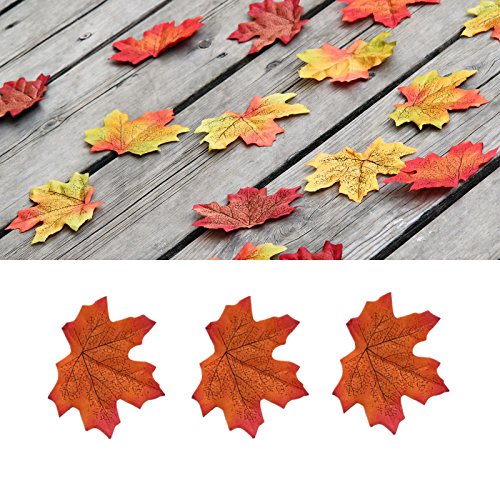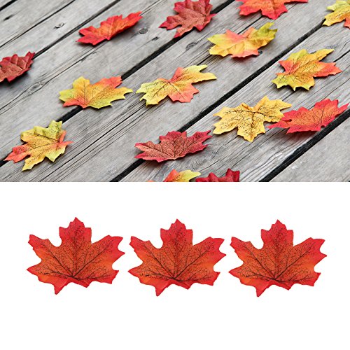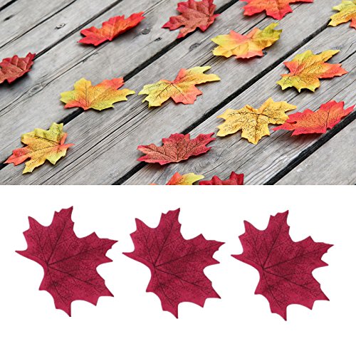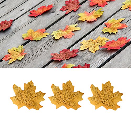 Individual artificial maple leaves are perfect for decorating wedding and banquet tables to add a fall touch