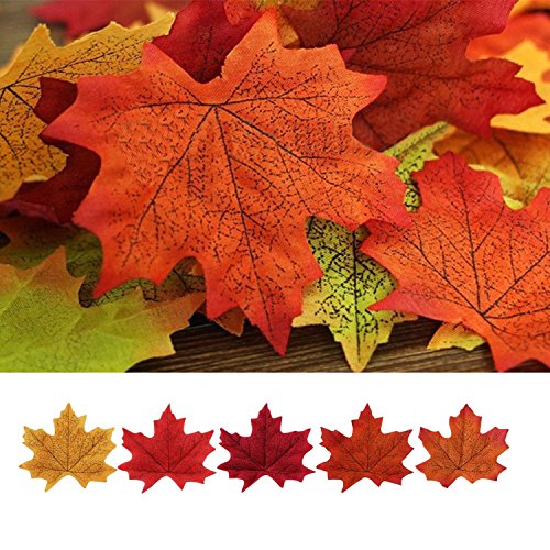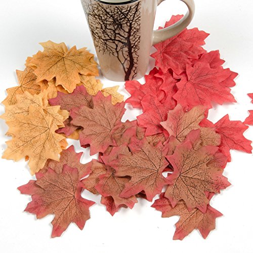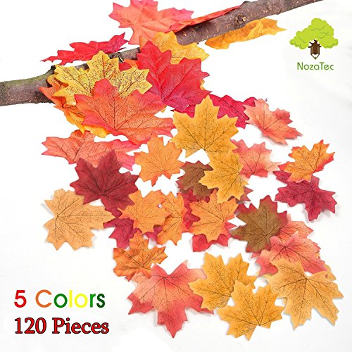 Noza Tec 120 Artificial Maple Leaves Approximately Assorted Mixed Fall Rich Artificial Flower Fall Colored Silk Maple Leaves for Weddings, Autumn Party,Events and Decorating Artificial fall maple leaves in deeper autumn colors.