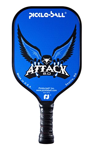 The Attack 2.0 pickleball paddle by Pickle-Ball, Inc. provides excellent control and power for players of all levels. An aluminum honeycomb core and carbon-graphite face both lend to ball control while the beefed up weight gives you the power you'll want on overhead slams and drives down the line. A UV resistant vinyl surface protects the paddle for years of play and gives the paddle extra grab on the ball for controlled spin.